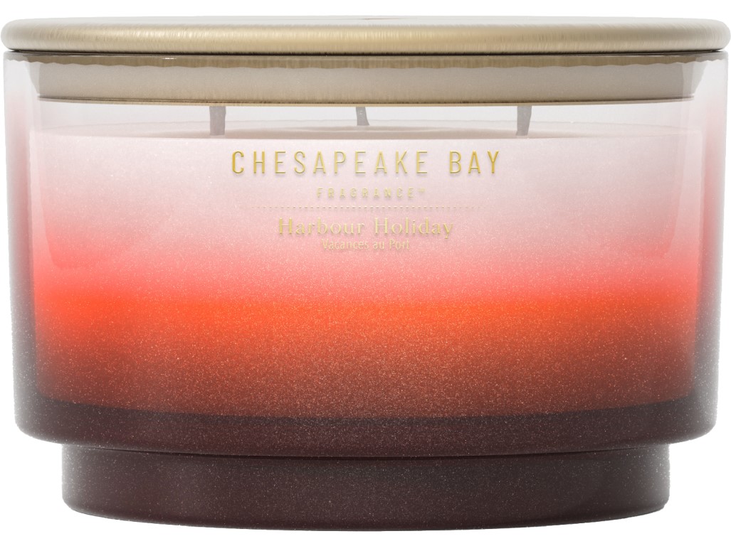 Svíčka Chesapeake Bay se 3 knoty (411 g) je stvořená pro chvíle, kdy chcete vytvořit výraznou atmosféru a naplnit prostor intenzivní, a přesto vyváženou vůní. Nabízí hluboký prožitek obohacený o přírodní esenciální oleje a exkluzivní složku Spindrift Accord™, která přináší do interiéru svěží, harmonický nádech inspirovaný pobřežím.Směs sójového vosku bez barviv a tři knoty ze 100% přírodních vláken zajišťují rychlé vytvoření vonného jezírka a čisté hoření po dobu až 36 hodin. Skleněná nádoba s jemným ombré efektem čerpá inspiraci z krásy matného mořského skla a spolu se stylovým víčkem tvoří elegantní doplněk, který dodá prostoru hloubku a útulnost. Vůně se rychleji rozprostře do celé místnosti a vytvoří příjemné prostředí pro relaxaci i společné chvíle.Ideální volba pro provonění větších místností, večerní odpočinek i výjimečné příležitosti, kdy chcete do domova vnést klidnou eleganci pobřeží.TIP: Pro rovnoměrné hoření nechte svíčku při každém zapálení rozpustit až ke kraji.