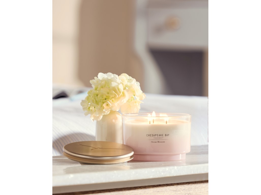 Svíčka Chesapeake Bay se 3 knoty (411 g) je stvořená pro chvíle, kdy chcete vytvořit výraznou atmosféru a naplnit prostor intenzivní, a přesto vyváženou vůní. Nabízí hluboký prožitek obohacený o přírodní esenciální oleje a exkluzivní složku Spindrift Accord™, která přináší do interiéru svěží, harmonický nádech inspirovaný pobřežím.Směs sójového vosku bez barviv a tři knoty ze 100% přírodních vláken zajišťují rychlé vytvoření vonného jezírka a čisté hoření po dobu až 36 hodin. Skleněná nádoba s jemným ombré efektem čerpá inspiraci z krásy matného mořského skla a spolu se stylovým víčkem tvoří elegantní doplněk, který dodá prostoru hloubku a útulnost. Vůně se rychleji rozprostře do celé místnosti a vytvoří příjemné prostředí pro relaxaci i společné chvíle.Ideální volba pro provonění větších místností, večerní odpočinek i výjimečné příležitosti, kdy chcete do domova vnést klidnou eleganci pobřeží.TIP: Pro rovnoměrné hoření nechte svíčku při každém zapálení rozpustit až ke kraji.