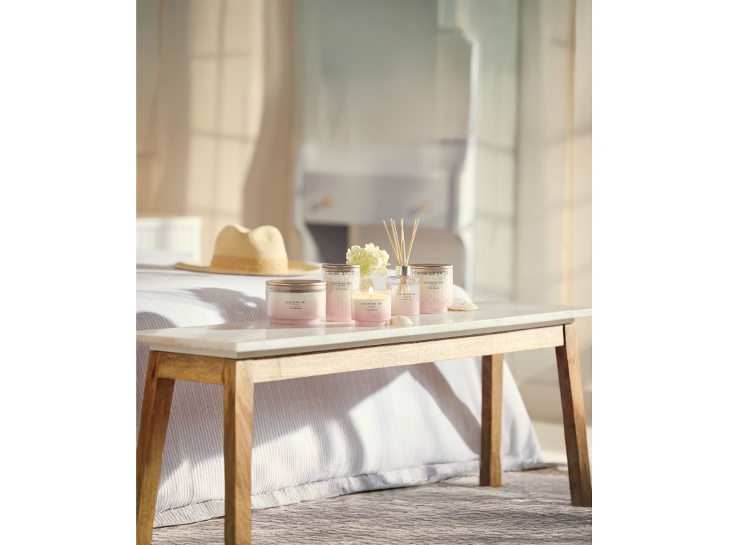 Střední svíčka Chesapeake Bay (227 g) je ideálním způsobem, jak se obklopit obnovující energií a nostalgií mořského pobřeží. Nabízí hluboký vonný prožitek obohacený o přírodní esenciální oleje a exkluzivní složku Spindrift Accord™, která věrně zachycuje osvěžující esenci zálivu a pomáhá vytvořit atmosféru pro chvíle, na kterých skutečně záleží.Směs sójového vosku bez barviv a knot ze 100% přírodních vláken zajišťují čisté hoření po dobu až 51 hodin. Texturovaná skleněná nádoba s jemným ombré efektem čerpá inspiraci z přirozené krásy matného mořského skla a spolu se stylovým víčkem tvoří elegantní doplněk, který ladí s jakoukoli náladou i interiérem.Skvělá volba pro provonění větších prostor nebo jako smysluplný dárek, který do domova vnese klidnou eleganci pobřeží.TIP: Pro rovnoměrné hoření nechte svíčku při každém zapálení rozpustit až ke kraji.