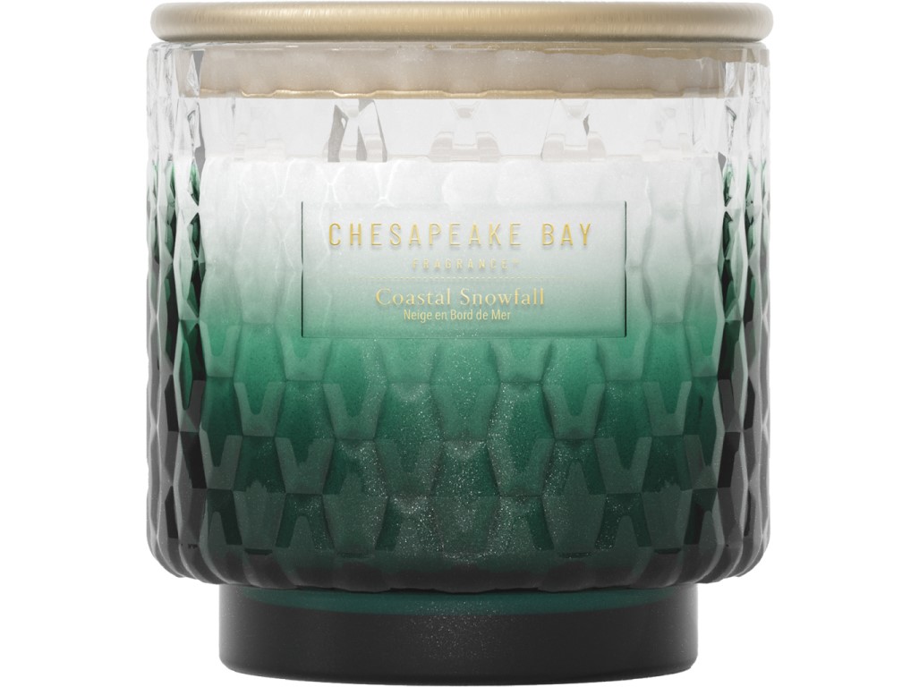 Velká svíčka Chesapeake Bay (312 g) je ideální pro chvíle, kdy chcete proměnit svůj domov v klidné útočiště. Nabízí bohatý vonný prožitek obohacený o přírodní esenciální oleje a exkluzivní složku Spindrift Accord™, která věrně zachycuje povznášející esenci zálivu. Vůně se postupně rozvíjí a vytváří harmonickou atmosféru, která působí uklidňujícím a harmonizujícím dojmem.Směs sójového vosku bez barviv a dva knoty ze 100% přírodních vláken zajišťují čisté, rovnoměrné hoření po dobu až 43 hodin a vytvářejí příjemné světlo, které podtrhuje pocit útulnosti. Texturovaná skleněná nádoba s jemným ombré efektem je inspirována krásou mořského skla a spolu se stylovým víčkem tvoří elegantní doplněk pro každý interiér.Perfektní volba pro každodenní relaxaci, pomalé večery i chvíle, kdy chcete do prostoru vnést klidnou eleganci pobřeží.TIP: Pro rovnoměrné hoření nechte svíčku při každém zapálení rozpustit až ke kraji.