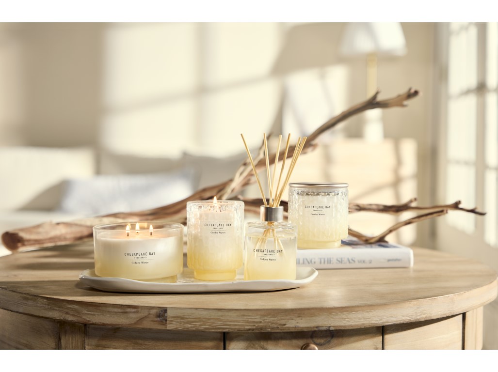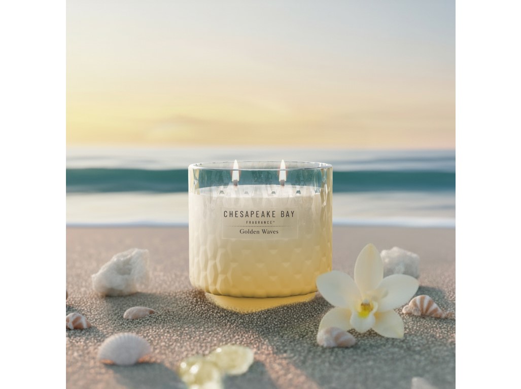 Velká svíčka Chesapeake Bay (312 g) je ideální pro chvíle, kdy chcete proměnit svůj domov v klidné útočiště. Nabízí bohatý vonný prožitek obohacený o přírodní esenciální oleje a exkluzivní složku Spindrift Accord™, která věrně zachycuje povznášející esenci zálivu. Vůně se postupně rozvíjí a vytváří harmonickou atmosféru, která působí uklidňujícím a harmonizujícím dojmem.Směs sójového vosku bez barviv a dva knoty ze 100% přírodních vláken zajišťují čisté, rovnoměrné hoření po dobu až 43 hodin a vytvářejí příjemné světlo, které podtrhuje pocit útulnosti. Texturovaná skleněná nádoba s jemným ombré efektem je inspirována krásou mořského skla a spolu se stylovým víčkem tvoří elegantní doplněk pro každý interiér.Perfektní volba pro každodenní relaxaci, pomalé večery i chvíle, kdy chcete do prostoru vnést klidnou eleganci pobřeží.TIP: Pro rovnoměrné hoření nechte svíčku při každém zapálení rozpustit až ke kraji.