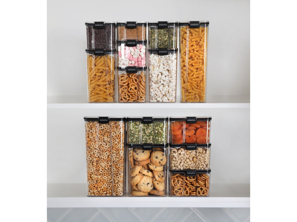 Průhledná dóza Sistema® Ultra™ je perfektně skladovatelná na pracovní desce, v kuchyňských zásuvkách, spíži a lednici.