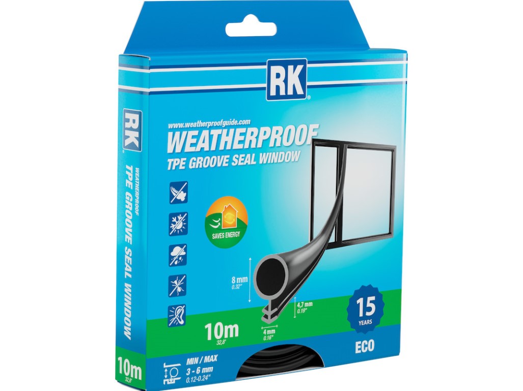 Je voděodolné, omyvatelné a odolává extrémním teplotám od -50 °C do +130 °C, takže spolehlivě funguje po celý rok.Těsnění má životnost až 15 let, odolává chemikáliím (kromě rozpouštědel, jako je lakový benzín nebo oleje) a pomáhá šetřit energii díky ochraně před průvanem a chladem.Vlastnosti:Vhodné pro mezery 3–6 mmPrůměr těsnění: 8 mmŠířka upevňovacího šípu: 4 mm, hloubka: 4,7 mmSnadná instalace do drážky i při nízkých teplotáchVysoce kvalitní TPE, vyrobeno ve Finsku