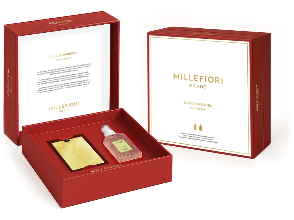 Nádherně zabalená dárková sada Luce Di Gardenia obsahuje sprej na osvěžení prádla 100 ml a dvě vonné karty, které promění váš domov i každodenní chvíle v zážitek plný svěžesti a jemné elegance. První paprsky ranního slunce přinášejí svěží tóny jablka, mandarinky a rebarbory, které jsou zahalené do intenzity bílých květů a levandule. Hřejivé objetí pižma a cedrového dřeva v základu vůně dodává celku harmonii a příjemnou hloubku. Vůně, která probouzí radost a lehkost každého dne.