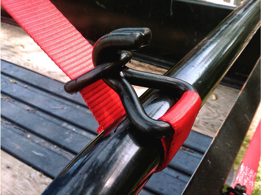 Součástí jsou háky s ochranným gumovým potahem, které zamezují poškození přepravovaných předmětů. Univerzální „D“ kroužky nabízejí široké možnosti uchycení i v méně přístupných místech. Kovové komponenty jsou opískované, což zvyšuje jejich odolnost vůči opotřebení i korozi – ideální pro časté profesionální použití.