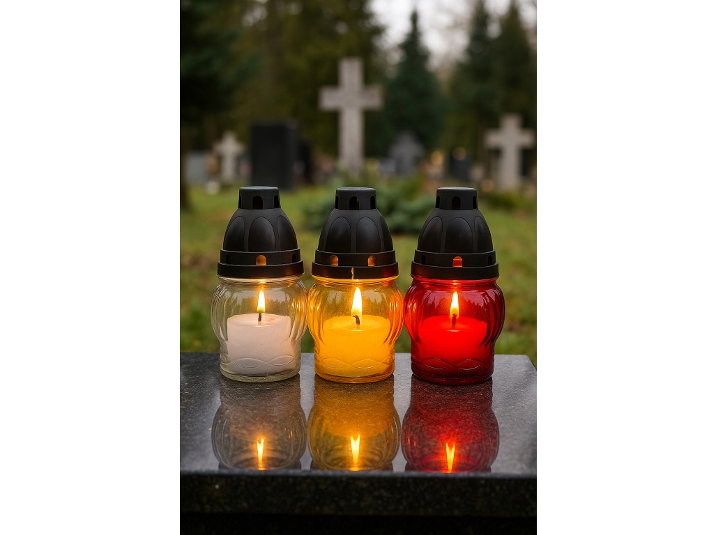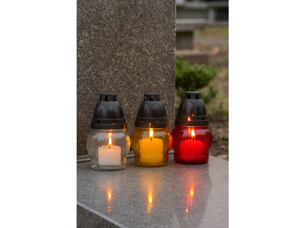 Sklo poskytuje až 9 hodin hoření. Vhodné ke zkrášlení hřbitovů, pomníků a ostatních míst posledního odpočinku. Jeho rozměry jsou 14 cm.
