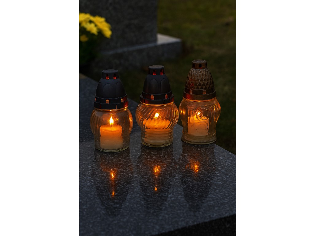 Poskytuje až 9 hodin hoření. Vhodné ke zkrášlení hřbitovů, pomníků a ostatních míst posledního odpočinku. Její rozměry jsou 14 cm.