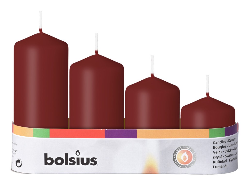 Svíčka Válec bordó Bolsius s nejvyšší kvalitou parafínu, 80x250mm.