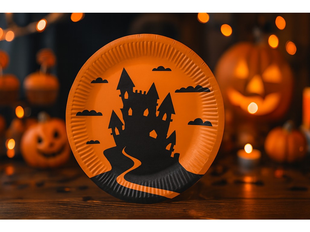 Papírové talířky s vtipnými motivy dýní, duchů a netopýrů v pestrých barvách. Skvělé pro dětské halloweenské oslavy. Průměr 23 cm, balení obsahuje 8 kusů.
