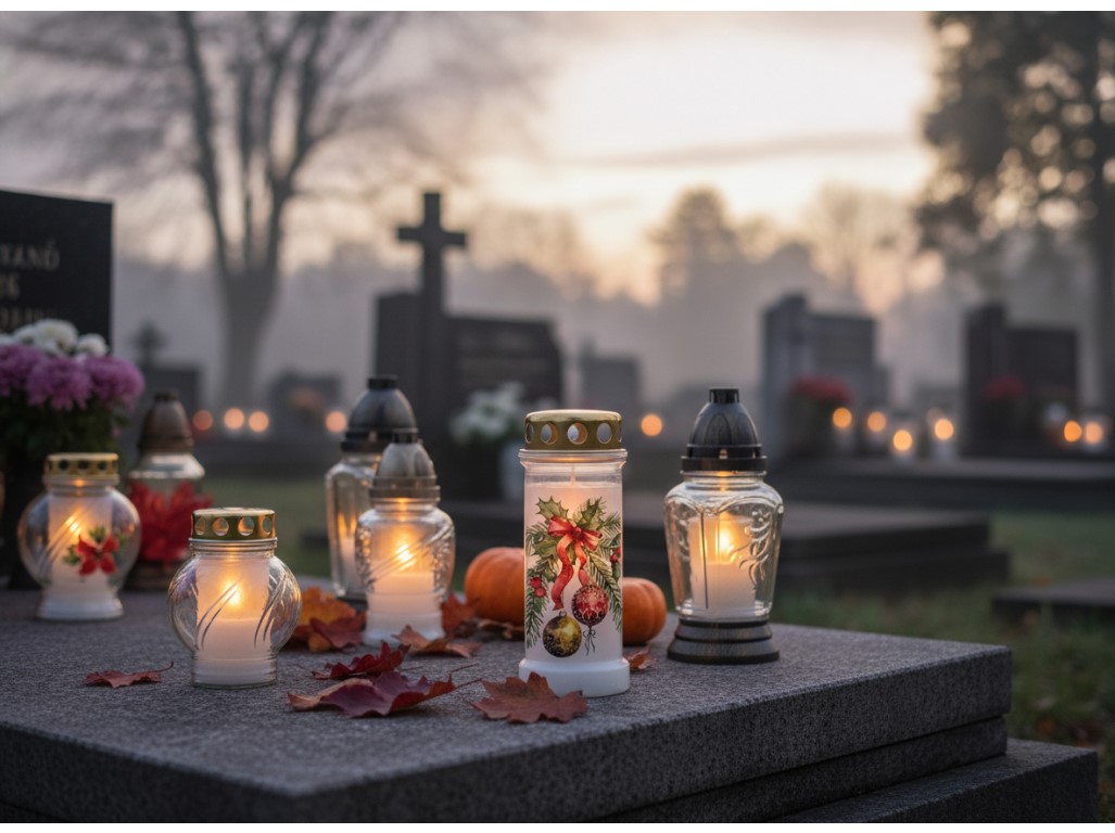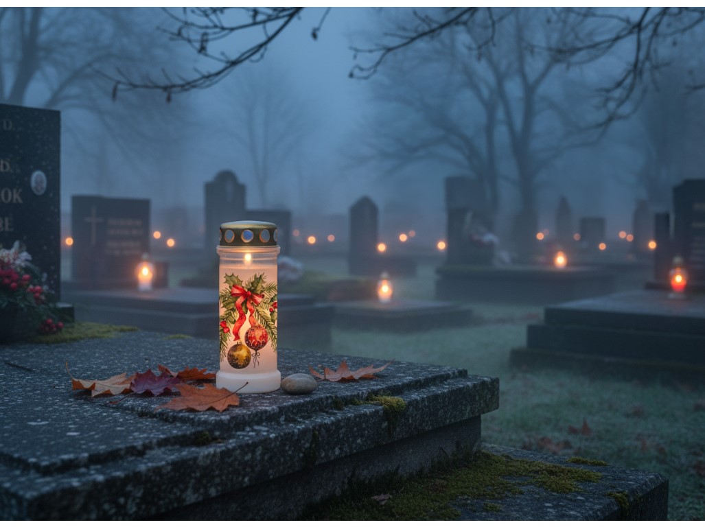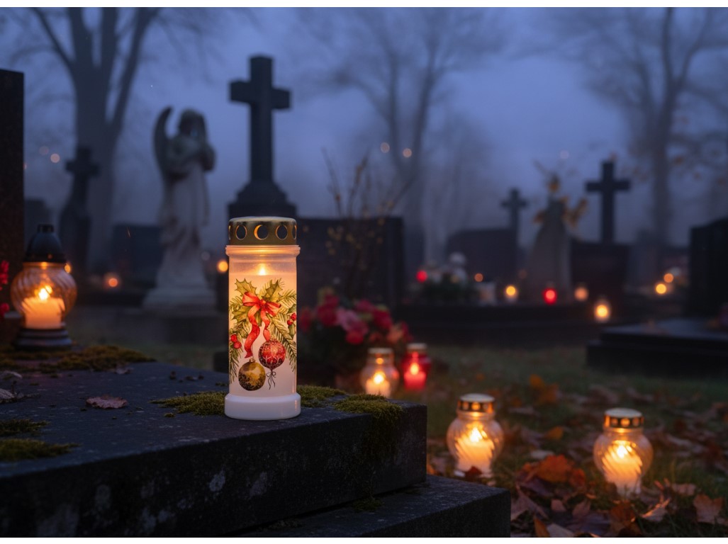 Prémiový hřbitovní vklad od značky Bolsius s víčkem a stylovým vánočním motivem je důstojným a zároveň estetickým způsobem, jak uctít památku blízkých v zimním období. S náplní o hmotnosti 220 g nabízí až 70 hodin hoření. Víčko chrání plamen před větrem a nepřízní počasí. Spojení kvality, tradice a sváteční atmosféry – pro chvíle tiché vzpomínky.