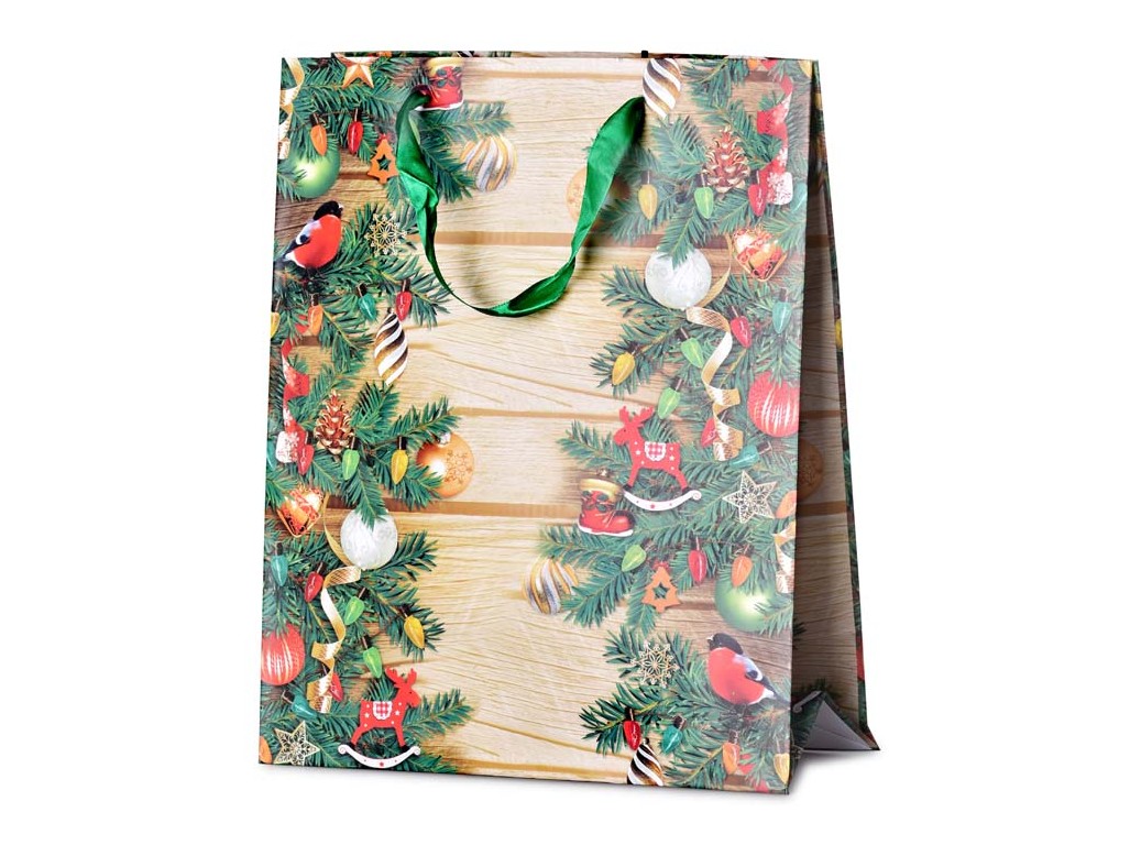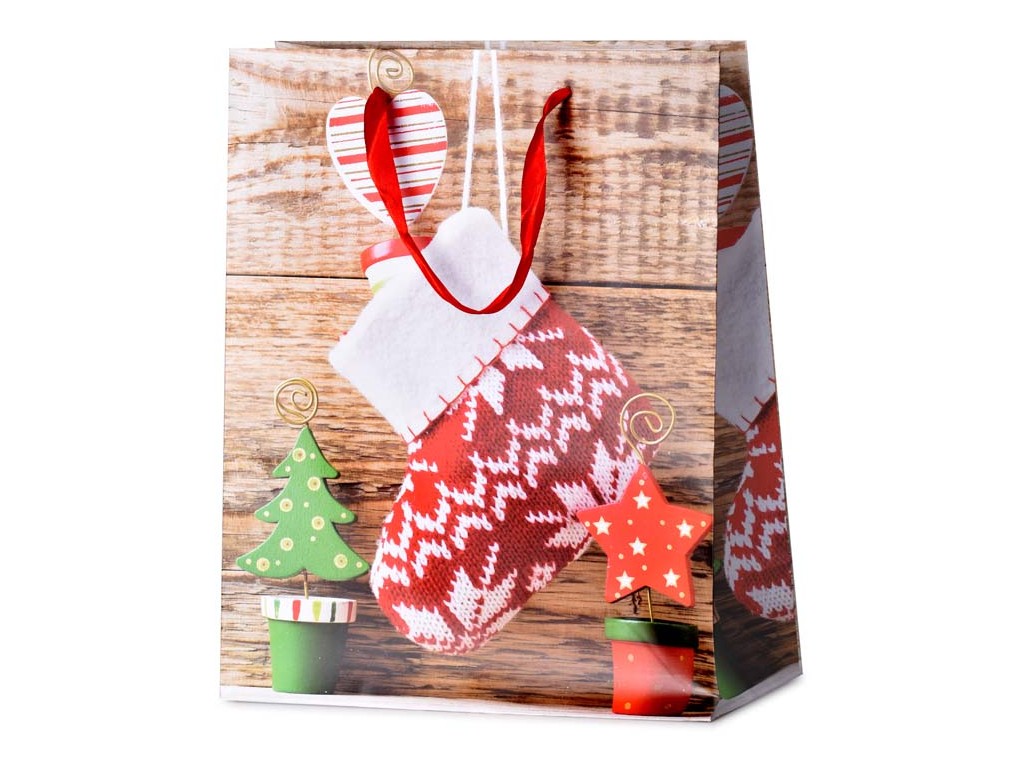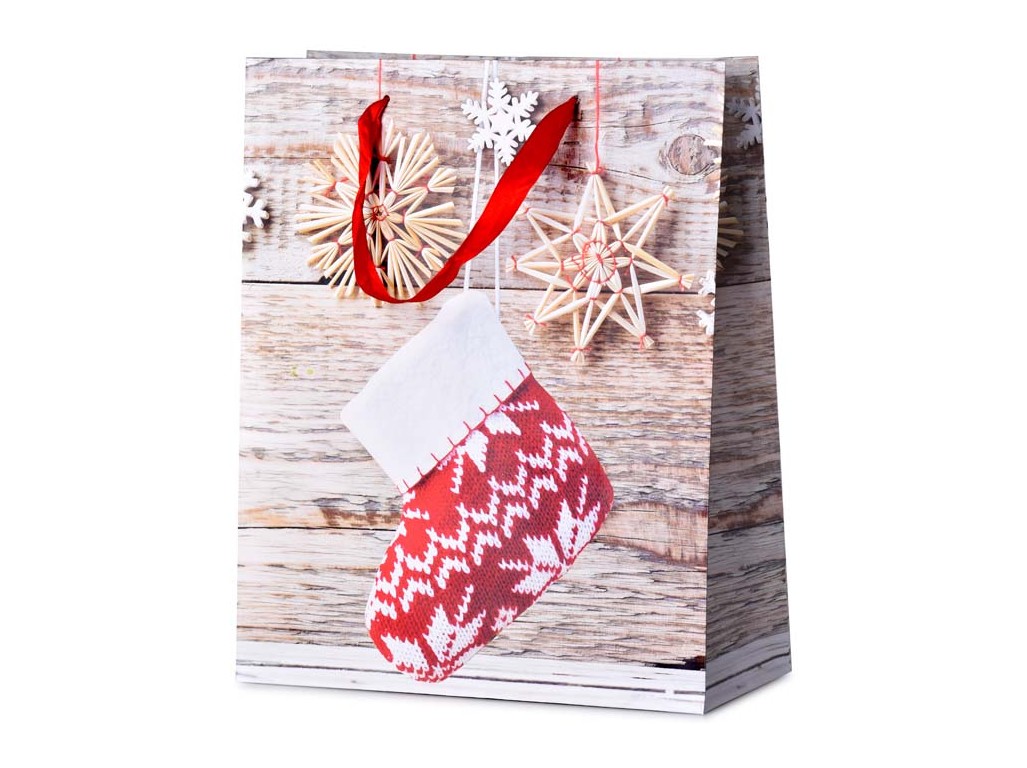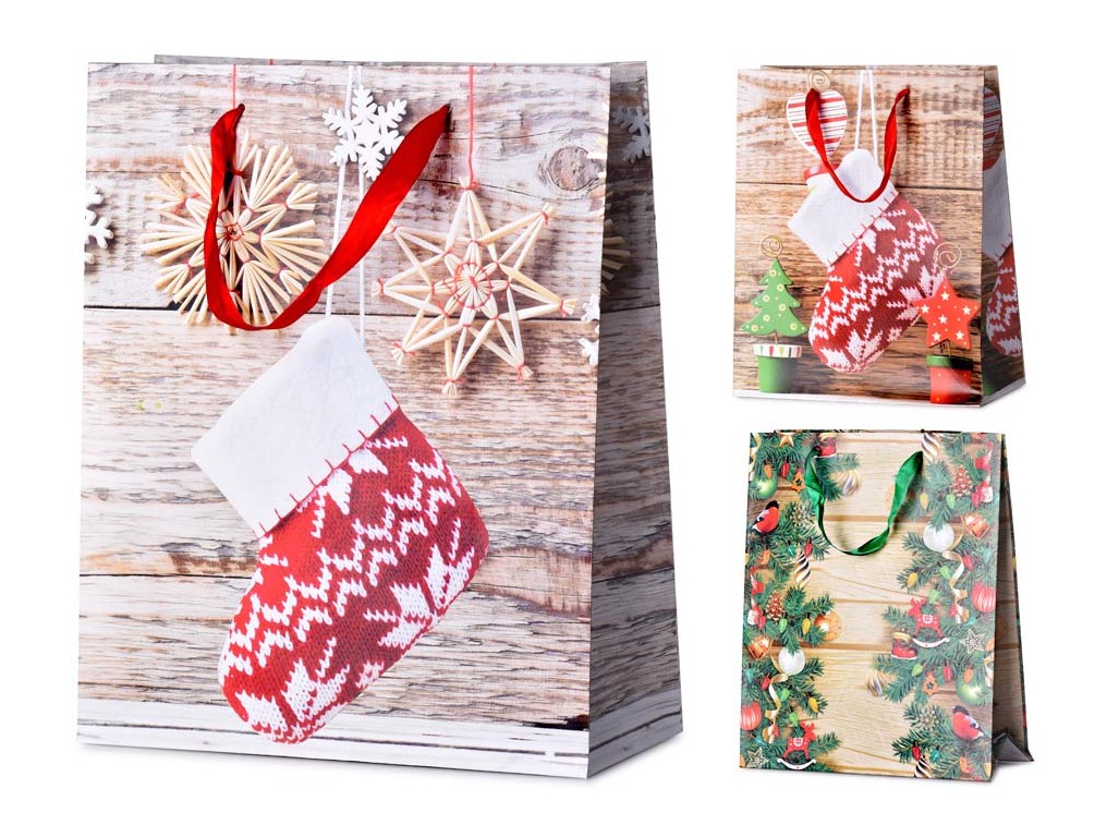 Dárková taška 260×320 mm s různými vánočními motivy a glitrovým zdobením, mix variant.
