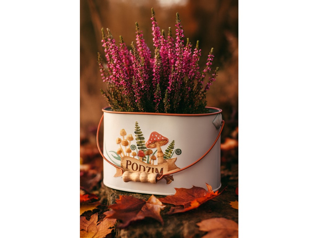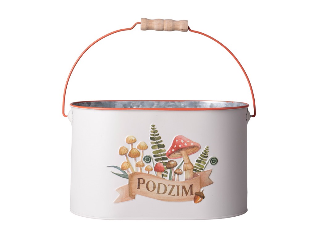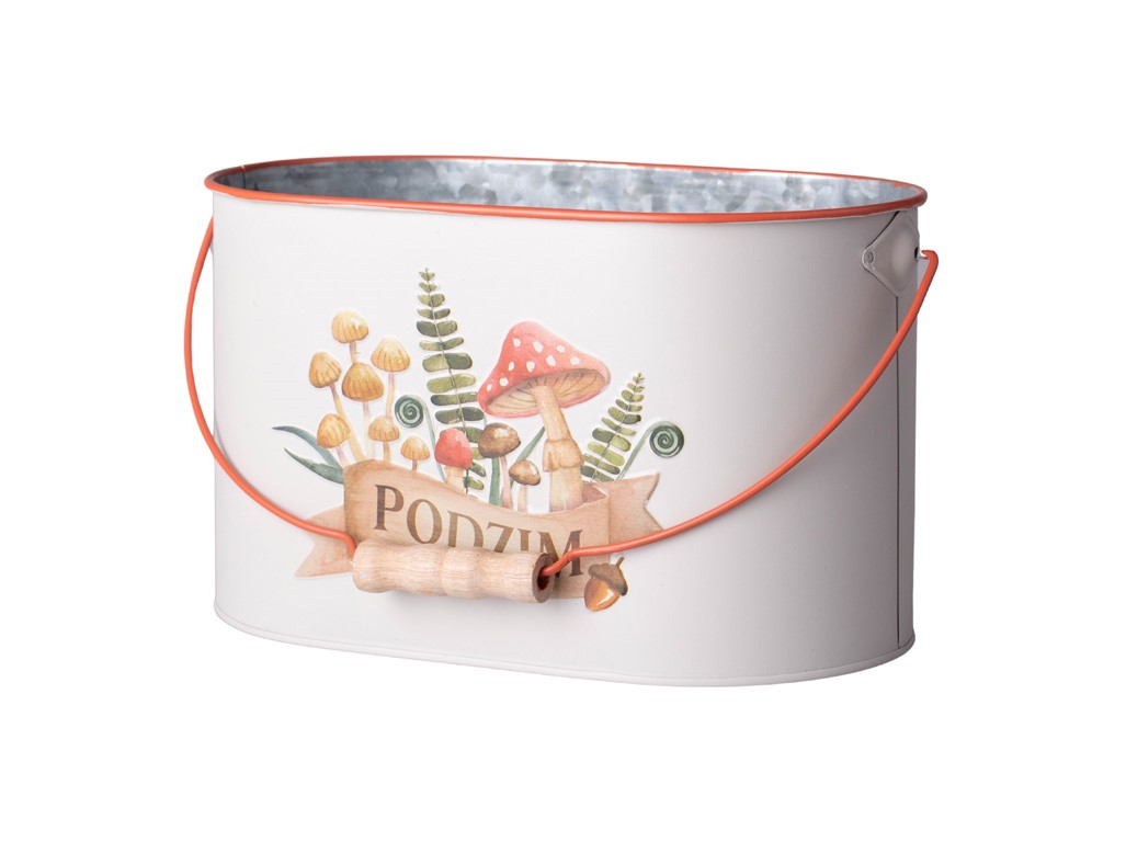 Plechová oválná dóza muchomůrky o rozměrech 245x140mm.