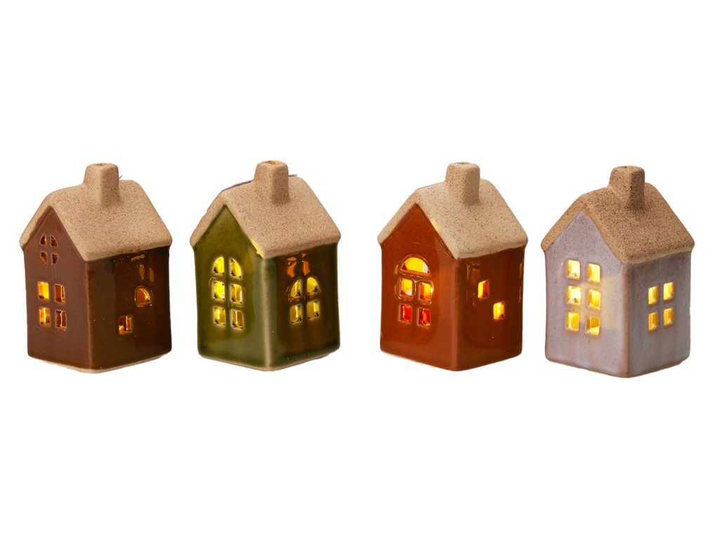 Porcelánový domeček s LED osvětlením vytvoří kouzelné zátiší během podzimu i zimy. Vhodný jako noční světélko nebo dekorační prvek. Mix barev.
