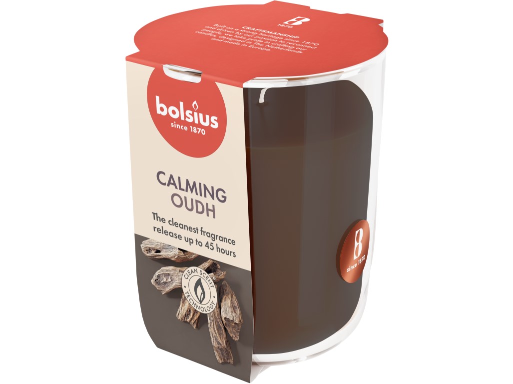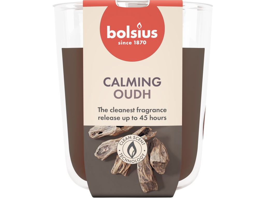 Vonná svíčka ve skle Bolsius s vůní Oud wood, 90x63mm.