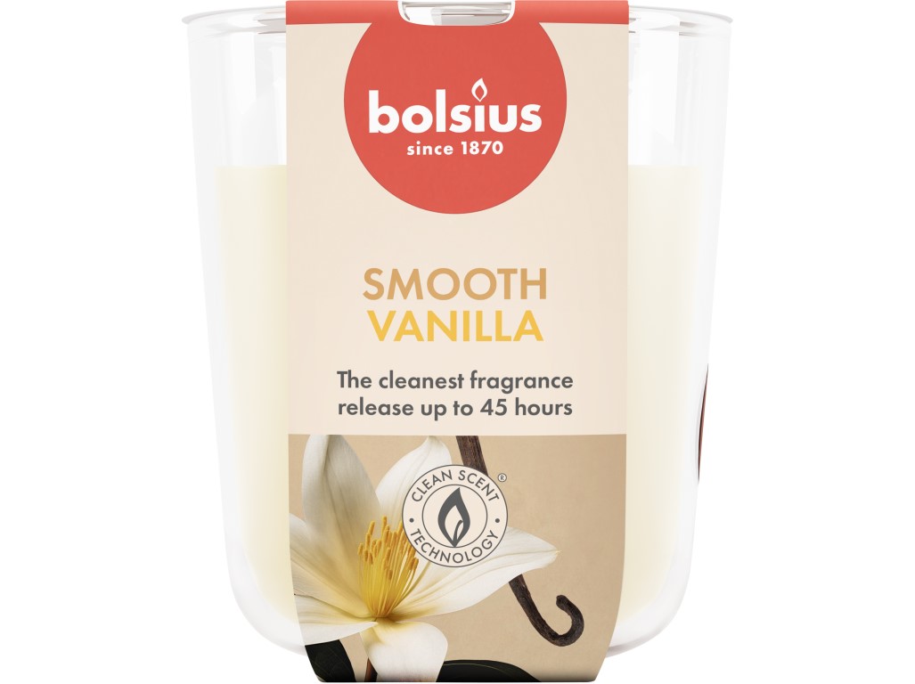 Vonná svíčka ve skle Bolsius s vůní Vanilla, 80x50mm.