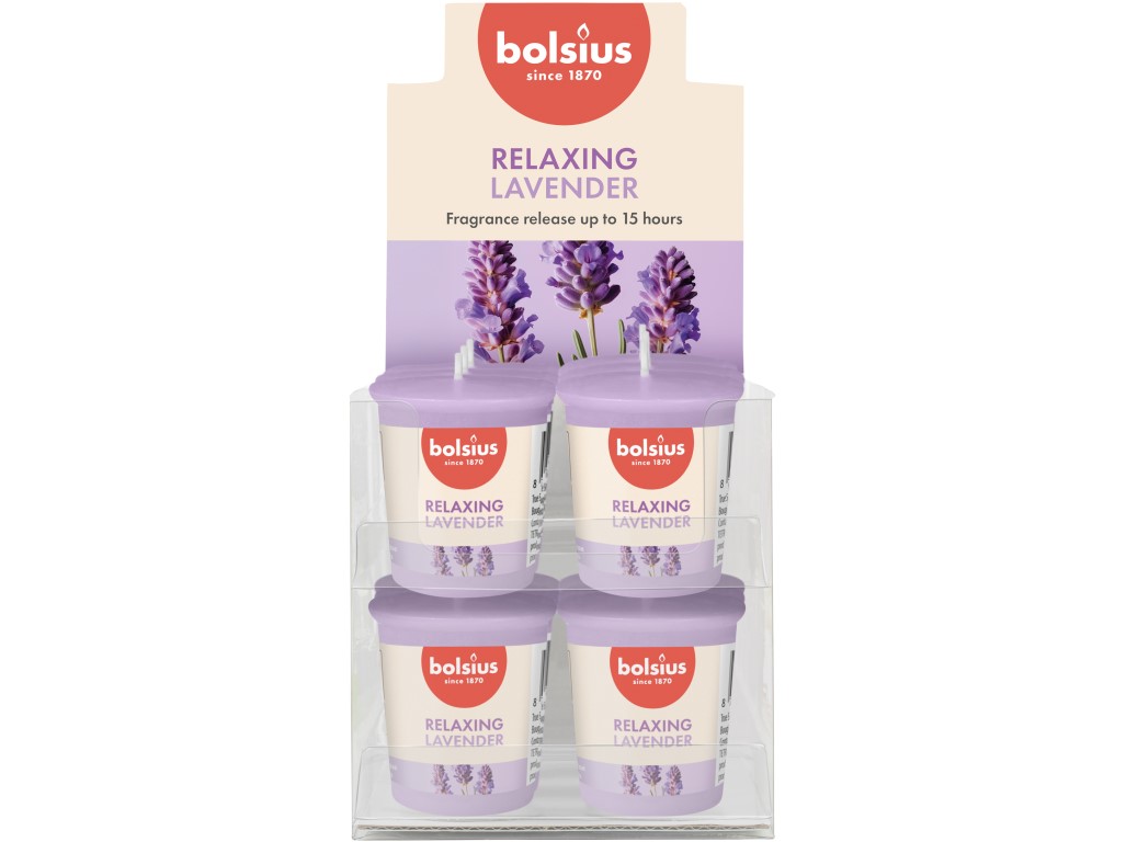 Bolsius čajové vonné svíčky tříbarevné Lavender basic 18ks