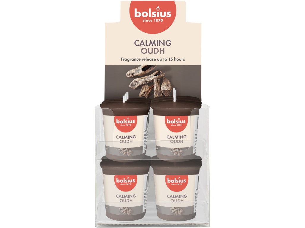 Výrazná, dřevitě kořeněná vůně vosku Oud Wood od Bolsius ve 6 praktických dílcích.