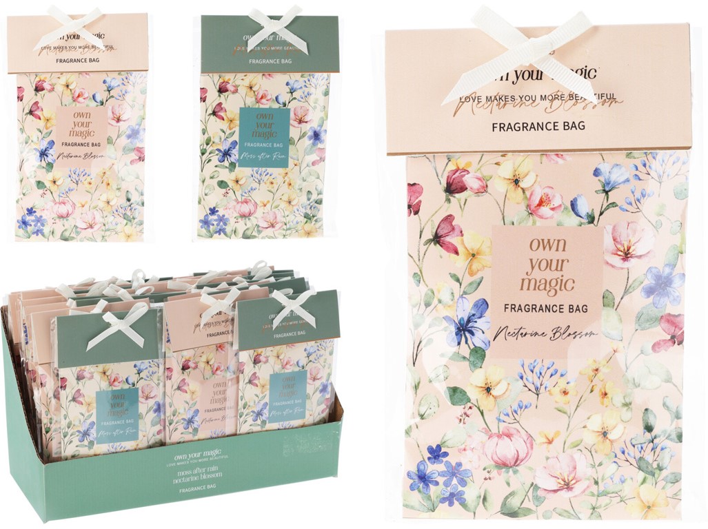 Tento vonný sáček je ideální pro osvěžení vašeho prostoru s mixem vůní a barev. Jeho rozměry jsou 90x2x145mm.