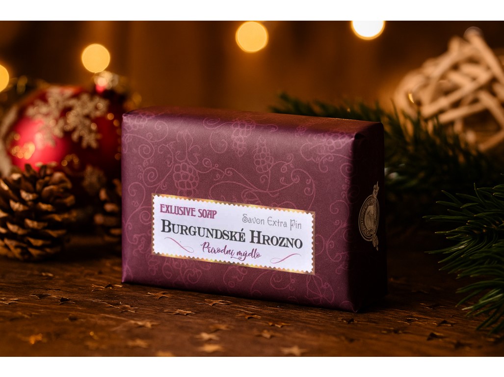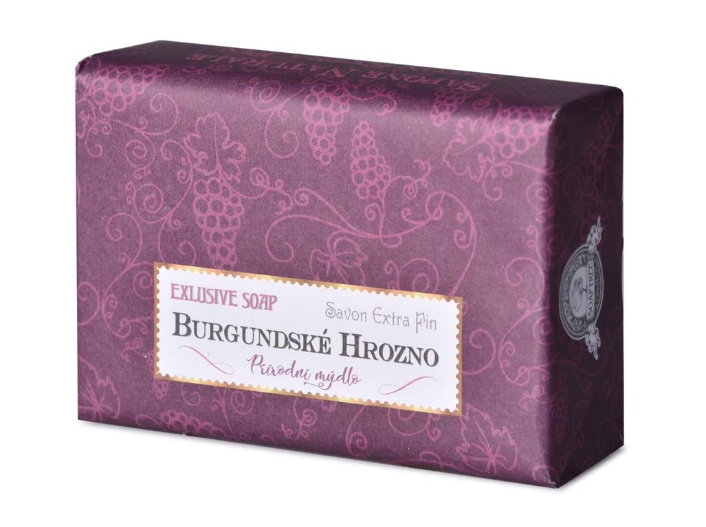 Mýdlo s vůní burgundského hrozna, ideální pro relaxaci a osvěžení pokožky. Hmotnost je 200 g.