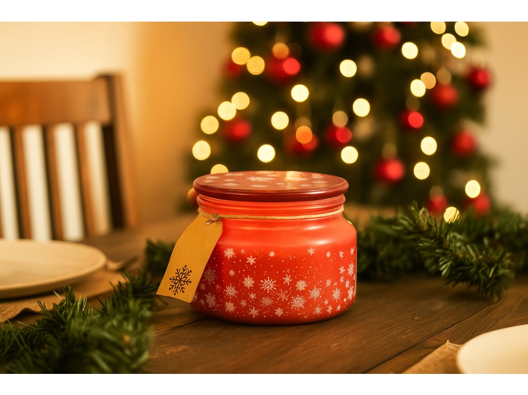 Vneste do svého domova kouzlo zimní pohody s vonnou svíčkou Emocio Magic Snowing v elegantní červeno-bílé variantě. Svíčka je uložena v kvalitním skle o rozměrech 100 × 79 mm a doplněna skleněným víčkem, které chrání vůni a dodává svíčce stylový, luxusní vzhled.Design Magic Snowing spojuje zimní svěžest s jemně sladkou aromatikou, která připomíná zasněžené večery plné klidu a pohody. Červeno-bílé provedení působí slavnostně, hřejivě a perfektně doplňuje vánoční nebo zimní dekorace.Díky kvalitnímu vosku a pečlivě zpracovanému knotu si užijete dlouhé a rovnoměrné hoření. Svíčka je ideální jako dekorace, pro relaxaci nebo jako krásný dárek, který potěší každého milovníka vůní a stylových interiérových doplňků.