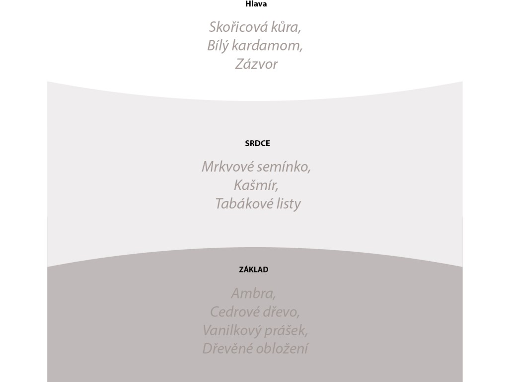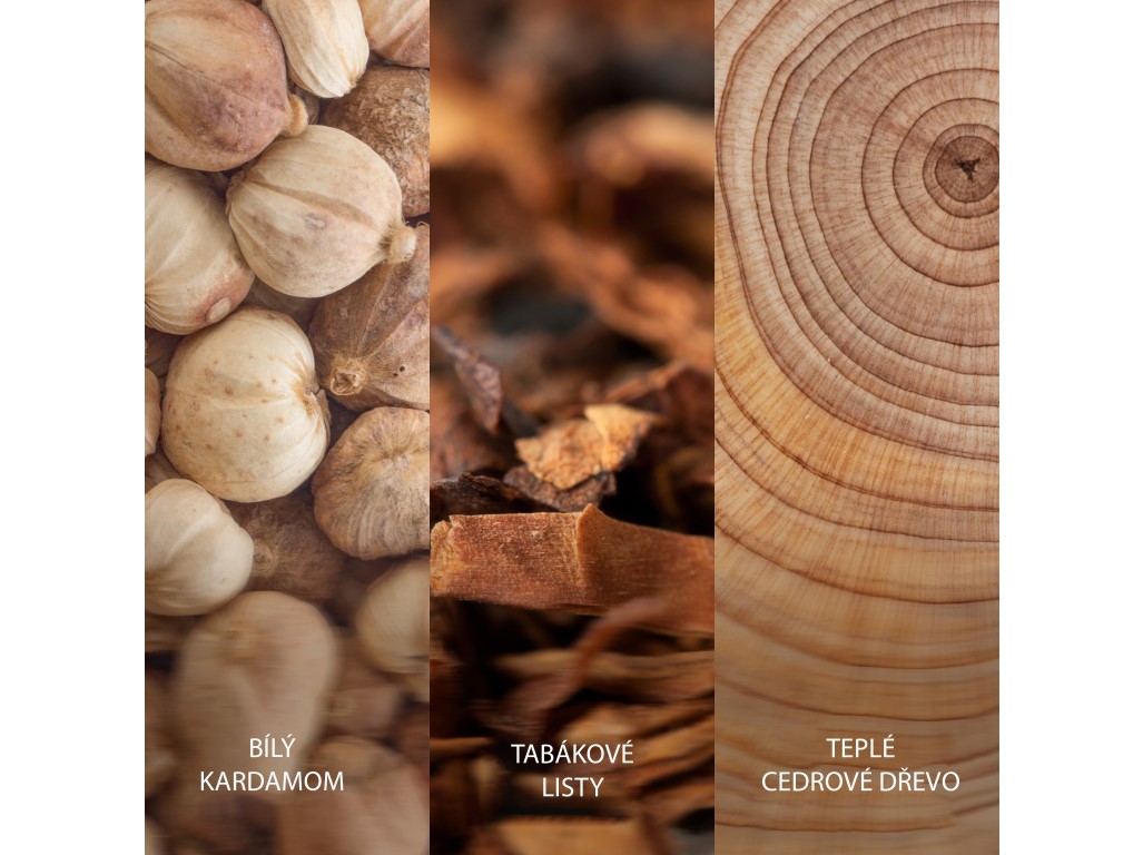 ambra, cedrové dřevo, vanilkový prášek, dřevěné obložení