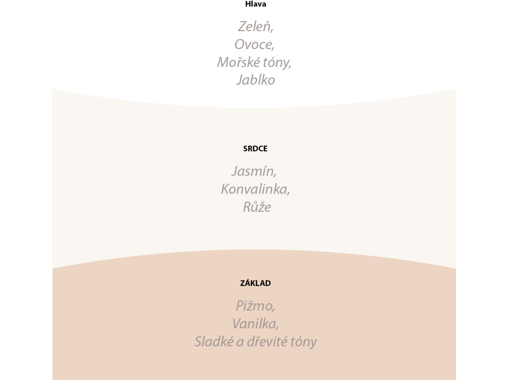 Vůně jemných květů vanilky s tóny mořské soli a jasmínu.