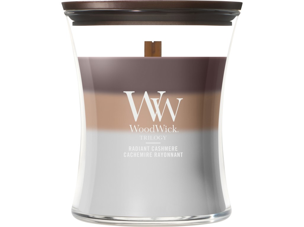 Střední váza WoodWick přináší vyvážený zážitek, který se snadno stane součástí každodenního rituálu. Jemné světlo, klidný zvuk praskajícího dřevěného knotu a pozvolné uvolňování vůně vytvářejí atmosféru, která působí přirozeně a nerušeně. Čisté, organické linie skleněné vázy odrážejí jednoduchost inspirovanou přírodními tvary a podporují pocit stability a rovnováhy. Každé zapálení svíčky připomíná krátký návrat ke klidu a soustředění. Střední váza je ideální pro každodenní rituály, kdy chceš do svého prostoru vnést harmonii a jemné spojení s přírodou.U svíček Trilogy se tři vrstvy vosku během hoření postupně propojují a plynule přecházejí jedna v druhou, čímž vzniká proměnlivý, ale harmonický smyslový zážitek. TIP: Pro rovnoměrné hoření nechte svíčku při každém zapálení rozpustit až ke kraji.