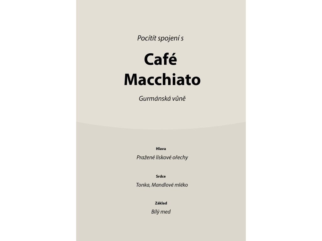 Tři gurmánské okamžiky: čerstvě pražená káva s lískovým oříškem, krémové mandlové mléko s tonkou a sladký medový závěr s vanilkou a toffee. Postupně se rozvíjející vůně přináší hřejivou, útulnou atmosféru.