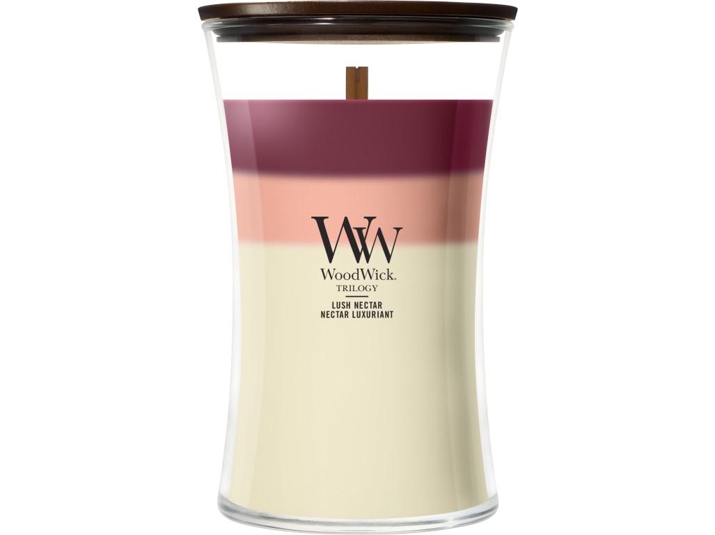 Velká váza WoodWick je stvořená pro chvíle, kdy chceš zpomalit a dopřát si klid inspirovaný přírodou. Díky svému objemu a ikonickému dřevěnému knotu vytváří hluboký, hřejivý zvuk praskajícího ohně, který uklidňuje a přirozeně ztišuje prostor. Organicky tvarovaná skleněná váza podporuje rovnoměrné hoření a umožňuje vůni pozvolna zaplnit místnost. Zapálení svíčky se mění v rituál, který pomáhá odpoutat se od ruchu dne a znovu se ukotvit v přítomném okamžiku. Velká váza je ideální pro dlouhé večery a otevřené prostory, kde chceš cítit teplo, harmonii a klid, které přináší propojení s přírodou.U svíček Trilogy se tři vrstvy vosku během hoření postupně propojují a plynule přecházejí jedna v druhou, čímž vzniká proměnlivý, ale harmonický smyslový zážitek. TIP: Pro rovnoměrné hoření nechte svíčku při každém zapálení rozpustit až ke kraji.