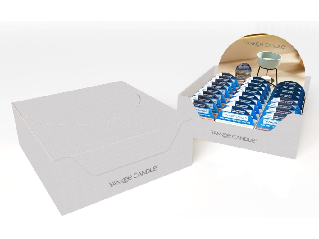 Prodejní krabička vonných vosků Yankee Candle je ideálním řešením pro přehledné vystavení a prodej oblíbených vosků v prodejně. Box obsahuje celkem 24 kusů vosků v mixu vůní inspirovaných jarní a letní atmosférou.Vonné vosky jsou určené do aromalampy nebo elektrického aroma difuzéru. Po rozehřátí postupně uvolňují intenzivní vůni, která rychle provoní interiér. Díky různorodému výběru vůní si zákazníci mohou vyzkoušet a objevit nové oblíbené aroma.Obsah vůní: Fresh Cut Roses, Clean Cotton, Vanilla Lime, Art in the Park, Cucumber Mint Cooler, Smoked Vanilla & Cashmere, Pink Cherry & Vanilla, Lakefront Lodge, White Gardenia, Desert Blooms, Aloe & Agave, Stargazing