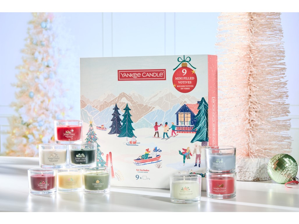 Tato vánoční sada obsahuje 9 vůní svíček Yankee Candle: Silver Sage & Pine, Christmas Cookie, Sparkling Cinnamon, White Spruce & Grapefruit, Black Cherry, A Calm & Quiet Place, Christmas Eve, Warm Cashmere, Sage & Citrus.