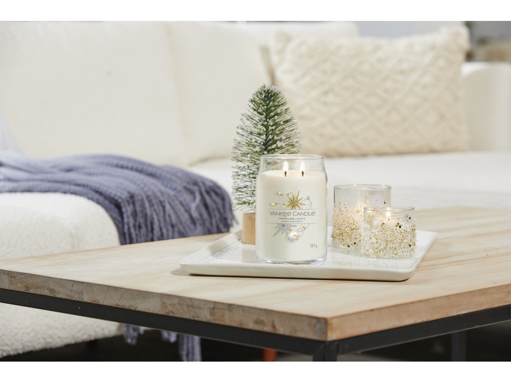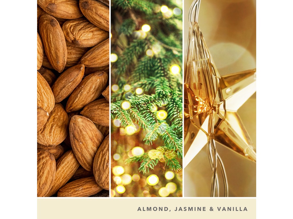 (Blikající světýlka) S prvním nataženým řetězem vánočních světýlek je ten správný čas na slavnostní výzdobu každé místnosti. Zpříjemněte si jí slavnostní a zářivou vůní mandlí, jasmínu a ambry.