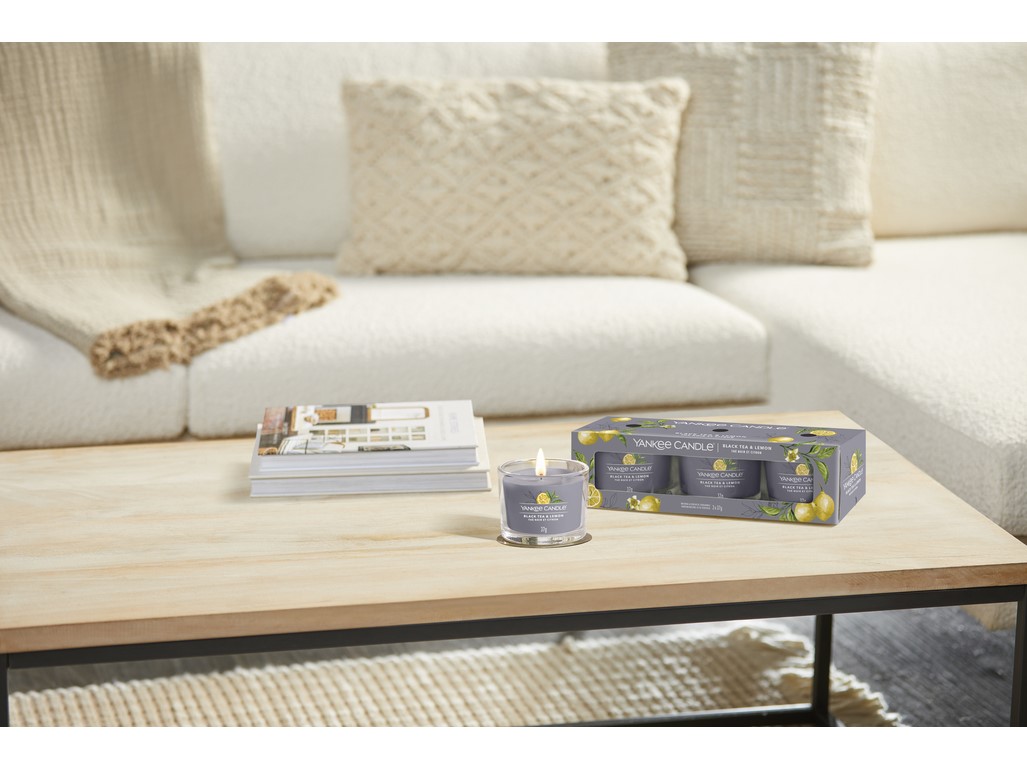Plněné votivní svíčky ve skle jsou moderním způsobem, jak si užít vaší oblíbenou vůni. Trojice svíček v dekorativní krabičce vám poslouží jako krásný dárek. Můžete zapálit svíčky samostatně nebo najednou a užít si intenzívnější vonný akord. Provonění interiéru až na 3 x 10 hodin. Svíčky jsou vyrobeny z hladké směsi sojového vosku. Skleničky z kvalitního skla můžete po vypálení použít jako svícínky pro čajovou svíčku. Rozměr krabičky 17,5 x 6 x 4,5 cm. Jedna svíčka: váha 37 g, rozměr 5,5 x 4 cm.