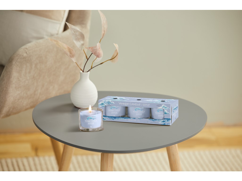 (Oceánský vzduch) Po dni plném zábavy na slunci pověste svůj plážový ručník, ať schne na svěžím oceánském vzduchu. Čisté ozónové tóny se mísí s vůní jasmínu, bílé ambry a santalového dřeva.